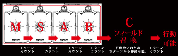 召喚時は、召喚待機エリア「M」に設置して順をおって召喚してください。